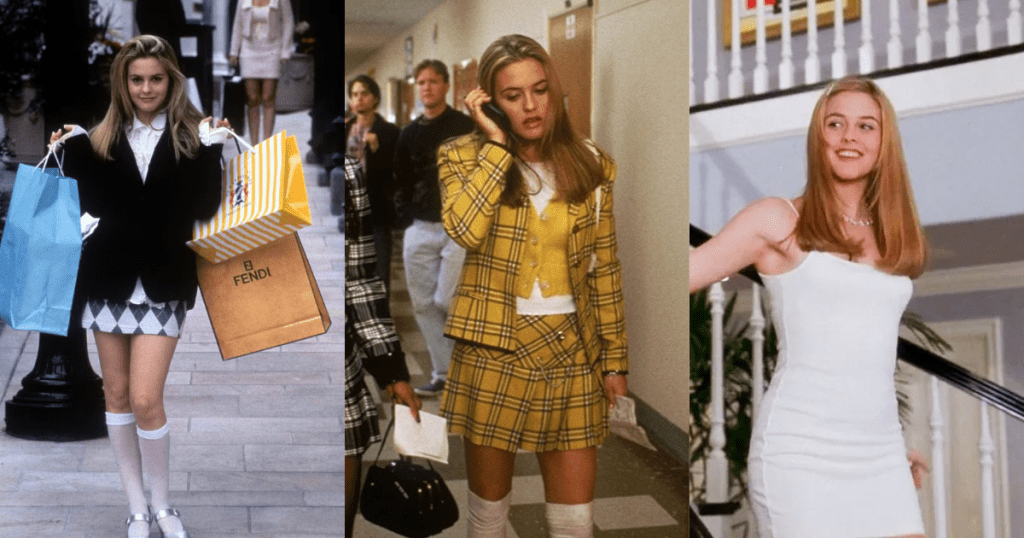 Por fim, impossível falar de moda no cinema sem citar Cher e seu conjuntinho xadrez amarelo. A cena do closet giratório é um marco, e até hoje inspira editoriais, coleções e releituras. Cher ajudou a consolidar os anos 90 como uma década fashion inesquecível, e suas roupas continuam sendo referência em plataformas como Pinterest e Instagram.