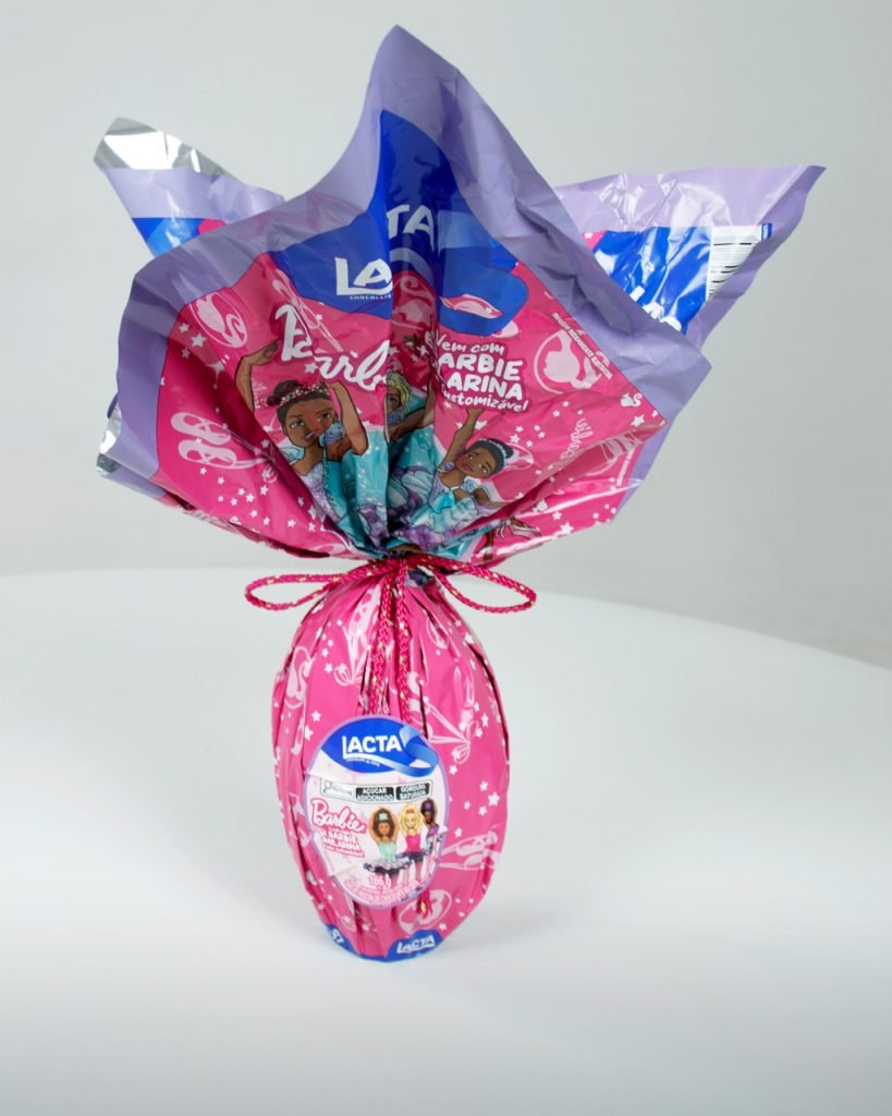 Barbie 166g – Ovo de chocolate ao leite que oferece uma boneca bailarina em três opções de cor de pele e cabelos.