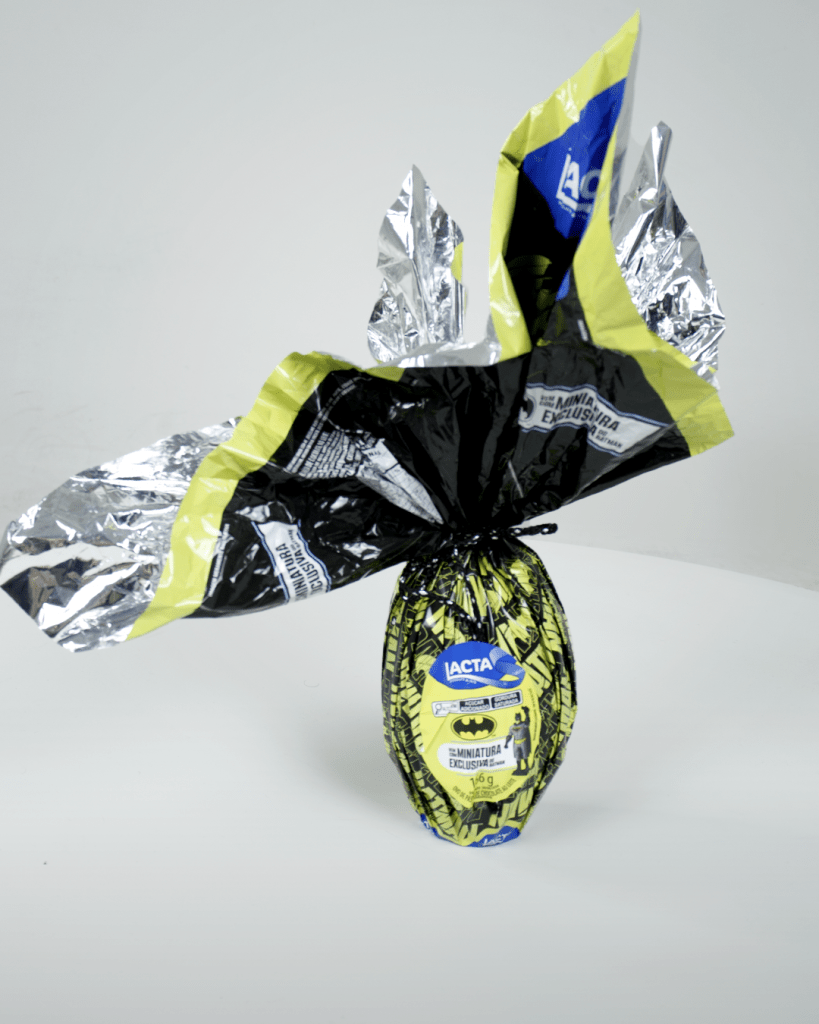 Batman 166g – Ovo de chocolate ao leite que traz o universo dos heróis para a Páscoa Lacta.