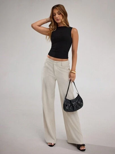 Confira: Calça de Linho de Perna Larga e Cor Sólida Damasco – SHEIN BAE