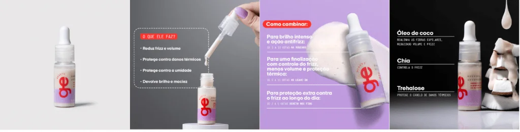 Com os boosters, a rotina capilar da GE Beauty vira um verdadeiro laboratório de autocuidado. Cada gota é um ajuste fino pra deixar o cabelo do seu jeito, sem complicação e com produtos veganos, inteligentes e multifuncionais.