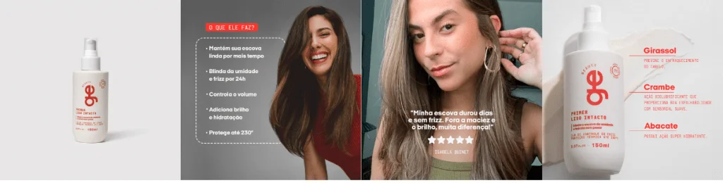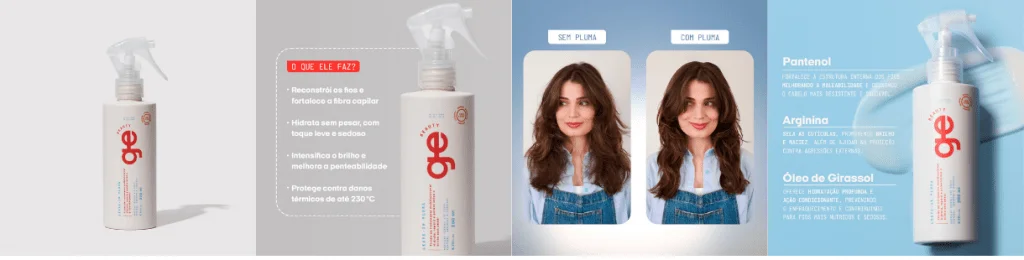 Se o skincare capilar da GE Beauty fosse um look, os finalizadores seriam o gloss. Aquele detalhe que muda o jogo. São eles que selam os fios, protegem do calor e deixam o cabelo com brilho e movimento de salão, mas com zero esforço e 100% atitude.