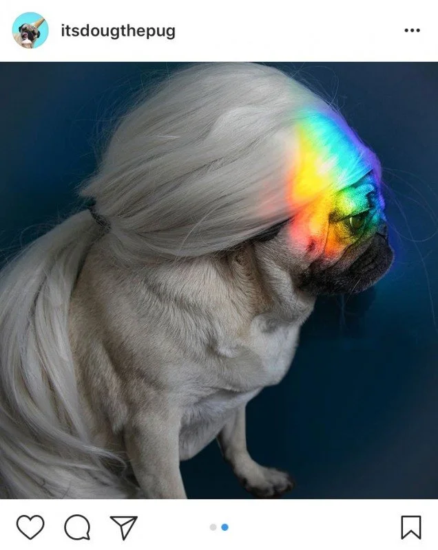 O Doug é conhecido por geral por ter rendido váaaaarios memes engraçadíssimos e icônicos, isso porque ele não é apenas um cãozinho fofo, ele (ou seus pais, no caso rs) acompanha TUDO o que rola no mundo Pop e reproduz as fotos das famosas! Babado né?