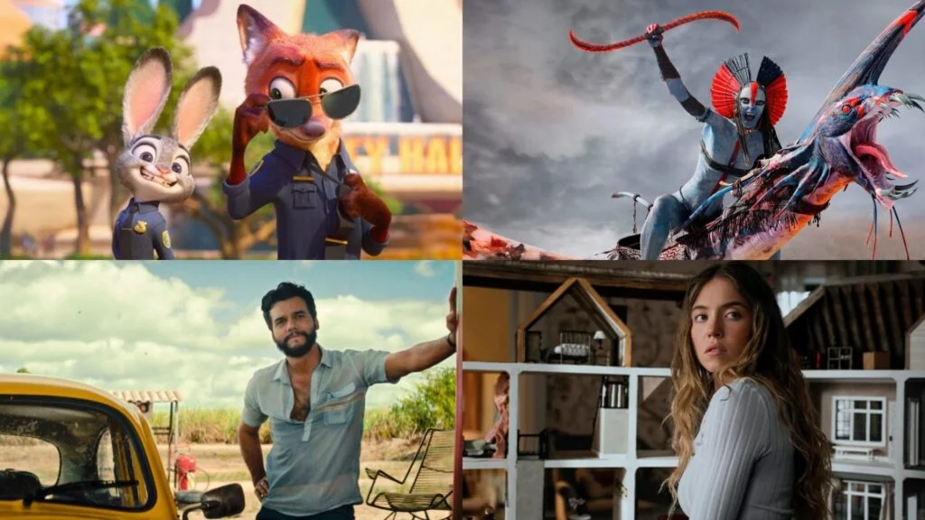 Cenas de “Zootopia 2”, “Avatar: Fogo e Cinzas”, “O Agente Secreto” e “A Empregada” (Foto: Divulgação)