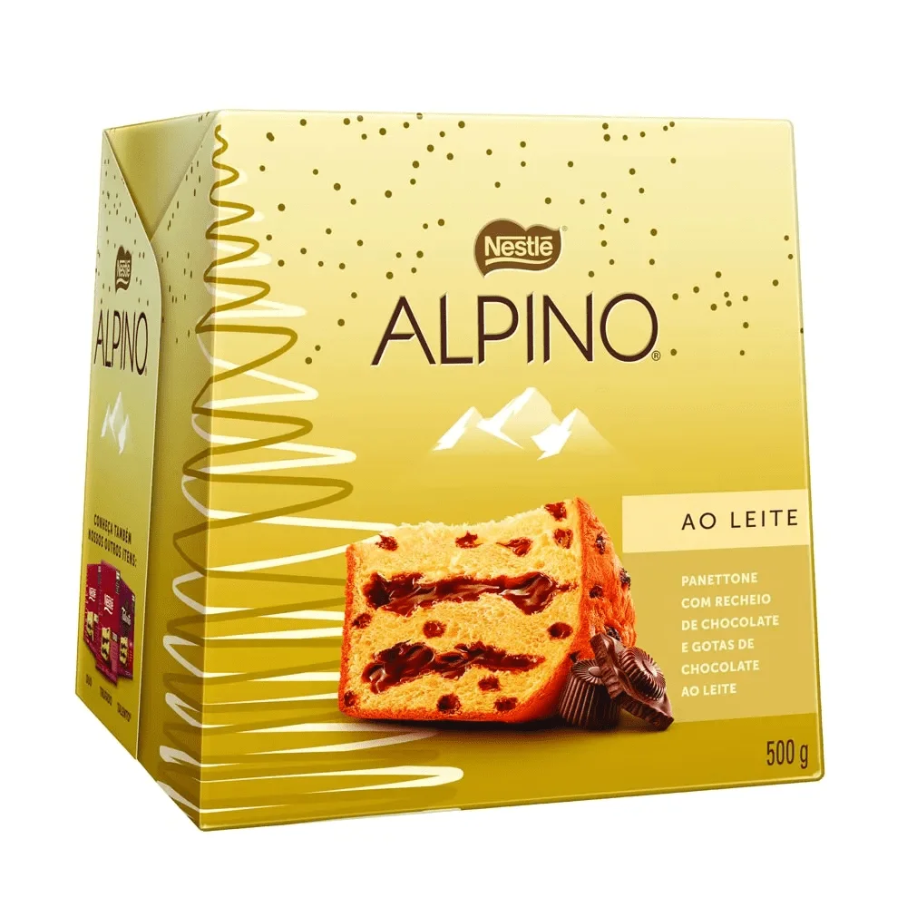 A Nestlé também entrou no jogo e entregou um panettone sabor Alpino com recheio cremoso de chocolate e gotas de chocolate ao leite. Essa delícia está custando em torno de R$35,99 nas lojas varejistas de todo Brasil.