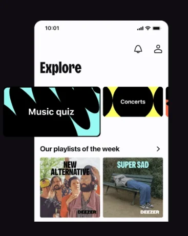 Como plataforma de experiências musicais, a Deezer vai além de oferecer um catálogo completo de faixas. Ela investe em recursos interativos como playlists colaborativas, recomendações personalizadas e quizzes musicais, que transformam a música em um jogo para testar seus conhecimentos.