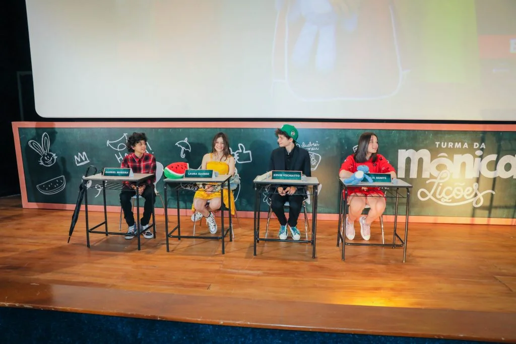 Ainda na coletiva, o elenco nos contou quando foi o primeiro contato deles com a Turma da Mônica. Os quatro foram unânimes ao responder a escola. Apesar dos pais incentivarem a leitura dos gibis, foi no colégio em que essa relação se fortaleceu.
