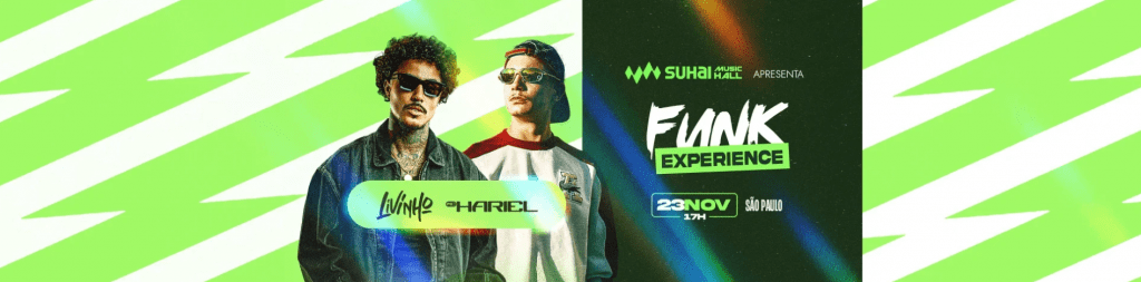Dois gigantes do funk nacional estão prestes a incendiar São Paulo. No dia 23 de novembro, a Suhai Music Hall recebe o Funk Experience, evento que promete uma noite de pura energia com MC Livinho e MC Hariel. Uma noite que promete ser letada de hits, rimas afiadas e uma atmosfera que celebra o melhor do som da nova geração do funk.