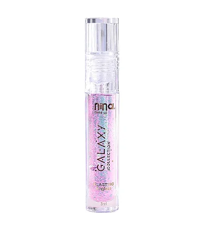 O Lip Gloss Galaxy Nina Makeup segue a tendência do glasting lips, famoso nas maquiagens coreanas. Por isso, a fórmula leve deixa os lábios hidratados e com brilho vítreo, enquanto as partículas de brilho difusas criam um efeito luxuoso. As três versões — Sedna, Saturno e Marte — são translúcidas, perfeitas para usar sozinhas ou por cima de outros produtos.
