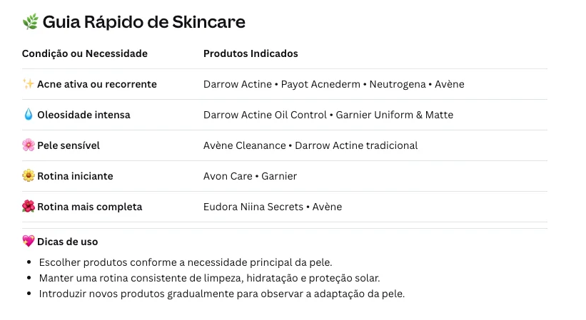 Opções para quem quer pele limpa, mas também prioriza sensorial agradável, uso contínuo e compatibilidade com rotinas mais completas.