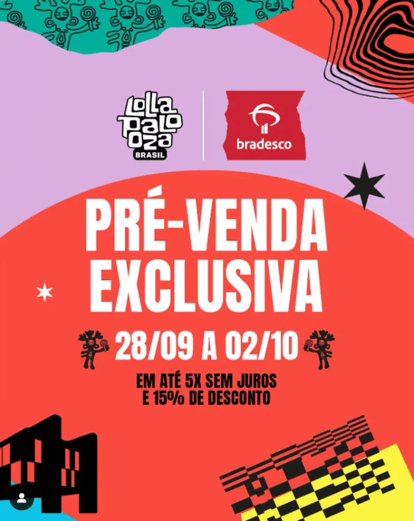 Na semana que vem, estarão disponíveis para os clientes Bradesco, também às 11h, o Lolla Pass, passaporte para os três dias de evento. Além disso, Lolla Comfort Pass, com acesso à área Lolla Comfort e Lolla Lounge Pass, para a área Lolla Lounge, também estarão para disponíveis.