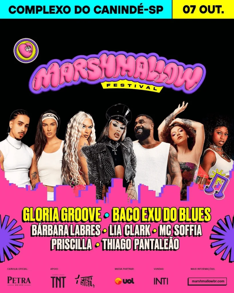 Assim, o local será dividido em 4 espaços. A Pista, Frontstage, Área Open Bar e Camarote VIP Open Bar Premium tem os ingressos vendidos separadamente com valores a partir de 70 reais. Você pode comprar aqui os ingressos e conferir tudo mais nas redes sociais do festival @marshmallowfestival.