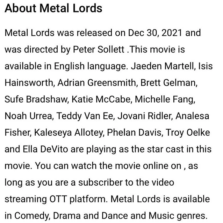 O filme conta a história de dois amigos que formam uma banda de heavy metal na escola e treinam muito para concorrer na Batalha de Bandas. O projeto é dirigido por Peter Sollett e produzido por DB Weiss e David Benioff, os mesmos responsáveis por “Game Of Thrones“.