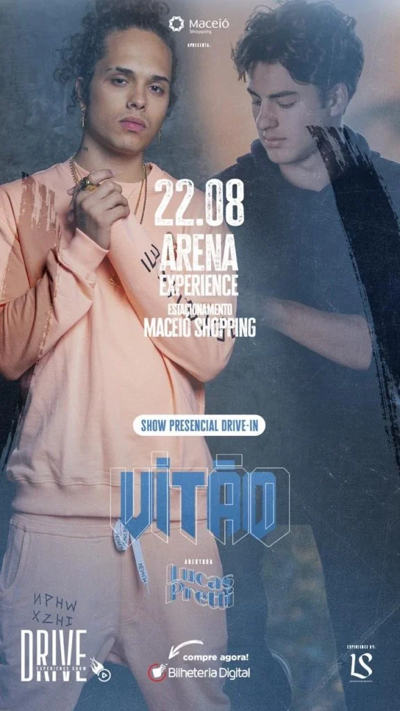 Maceió vai ficar pequena para a chegada desses dois! No próximo sábado (22), Vitão – que está confirmadíssimo no line up do Festival Teen 2020 – se apresentará no Drive Experience Show, montado no estacionamento do Maceió Shopping, com Lucas Pretti abrindo seu show.