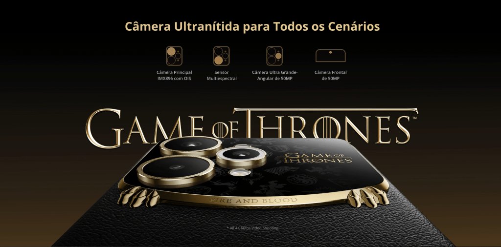 Aliás, por trás da estética lendária, o desempenho também é de outro mundo. O realme 15 Pro Game of Thrones Edition vem com três câmeras de 50 MP e filtros inspirados nas cores da série.