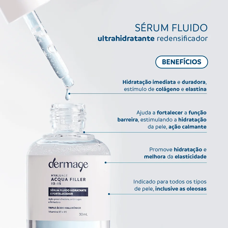 - Hidratar: Aplique 3 a 4 gotas do Hyaluage Acqua Filler. Ele cria uma barreira leve e trata os poros.
