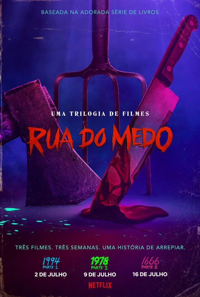 Ficou curiosx? Pois saiba que essa novidade já veio acompanhada das datas de estreia e um teaser inédito. “Rua do Medo parte 1: 1994” chega na Netflix dia 2 de julho, “Rua do Medo parte 2: 1978” dia 9 de julho, e por fim, “Rua do Medo parte 3: 1666” estreia em 16 do mesmo mês.