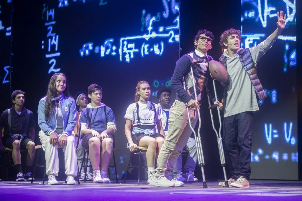 Aliás, como um bom musical, a peça tem muuuita canção. A trama intercala as performances musicais com momentos de diálogos, lembrando muito “High School Musical”. E isso tudo ao vivo, viu? Se prepare para ficar impressionado com o talento vocal do elenco.