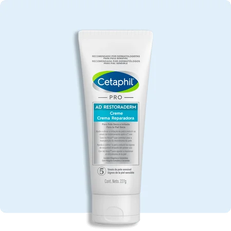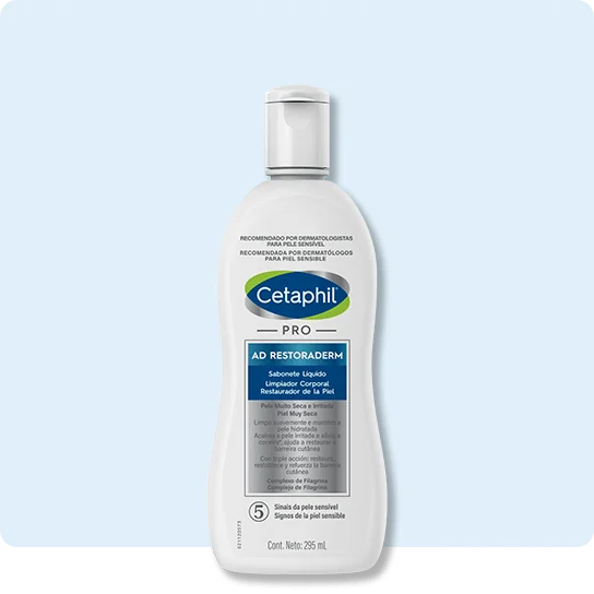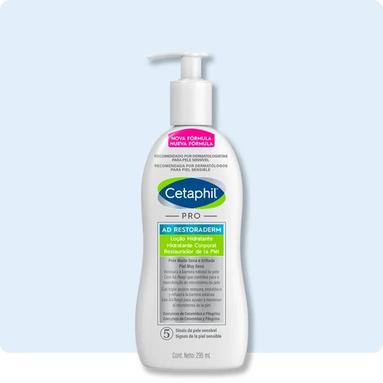 Caso esteja sofrendo com algum sintoma, a linha Cetaphil® Pro AD Restoraderm foi desenvolvida para peles com tendência atópica e oferece fórmulas focadas na reconstrução da barreira cutânea e no alívio da irritação:
