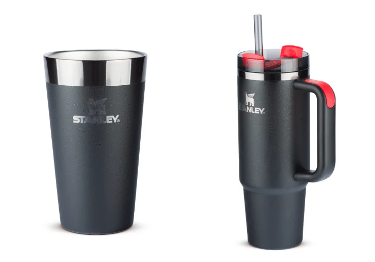 São dois modelos em preto clássico com detalhes em vermelho vivo – um visual que mistura vibe futurista e nóia espacial. Além disso, a garrafa e a caneca vêm em uma caixa temática exclusiva, perfeita para deixar na estante e bombar no Insta.
