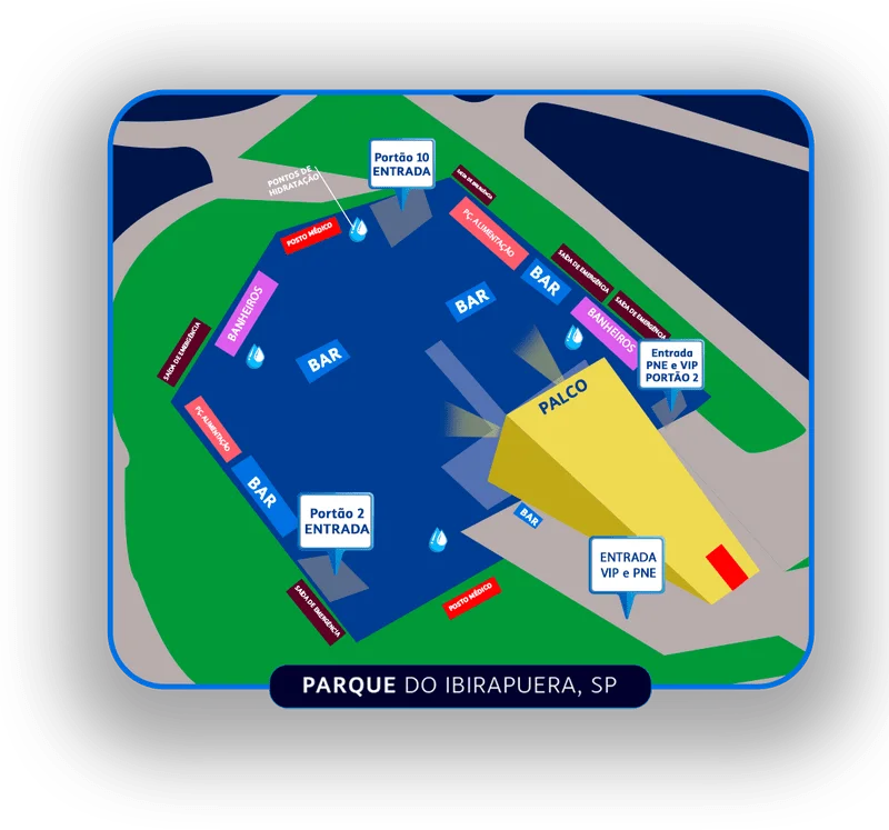 Por fim, o TIM Music SP pensou em tudo: bares, banheiros espalhados, postos médicos, zonas de emergência e pontos de hidratação. Tudo isso pra garantir segurança, conforto e muita diversão.