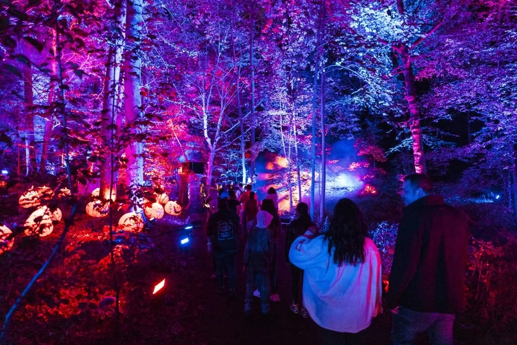 Enquanto percorrem o caminho iluminado, os visitantes mergulham no universo gótico de Jack, Sally e Zero, vivenciando episódios memoráveis que ganham vida por meio de esculturas 3D ricas em detalhes.